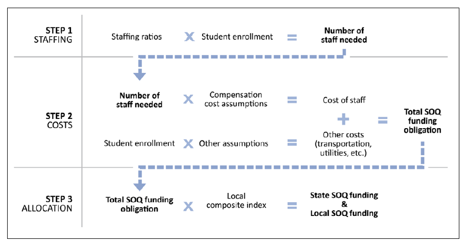 - Resource-based formulas determine the cost of delivering education in a district based on the cost of the resources, such as staff salaries and course materials, required to do so. The state may separately account for the additional cost of educating specific categories of students by distributing flat, per-student dollar amounts and/or through program-specific allocations.