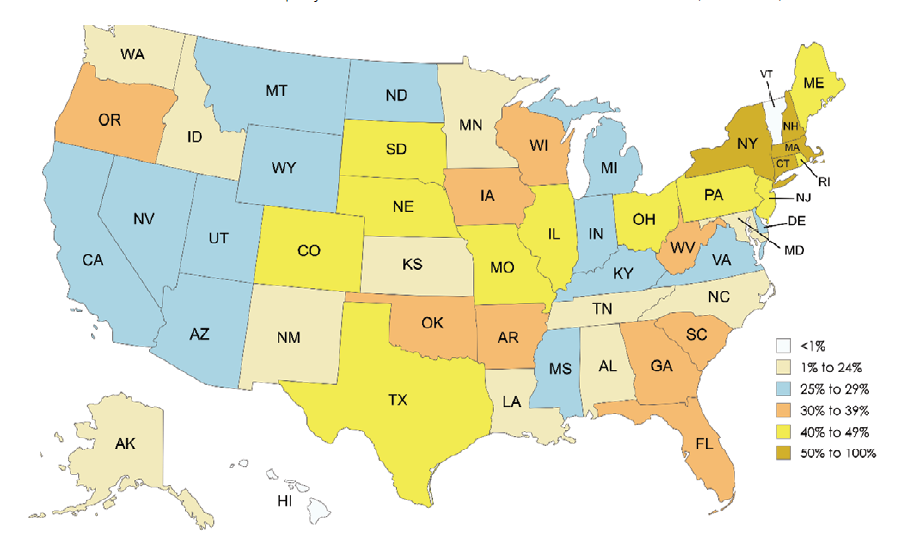 | Total # of States | 40 | 11 | 10 | 13 | 5 | 9 |