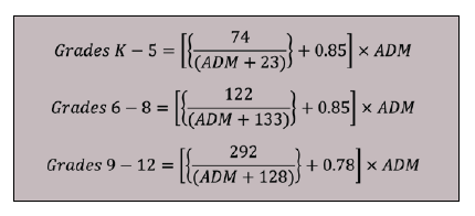- Student-based formulas assign a base cost to the education of an average full-time equivalency (FTE) student and calculate state funding for districts primarily by multiplying that cost by districts’ enrollment figures. The state accounts for the additional cost of educating specific categories of students by adjusting its distributions by applying multipliers to the base cost, adding flat, per-student dollar amounts to the base cost, and/or through program-specific allocations.